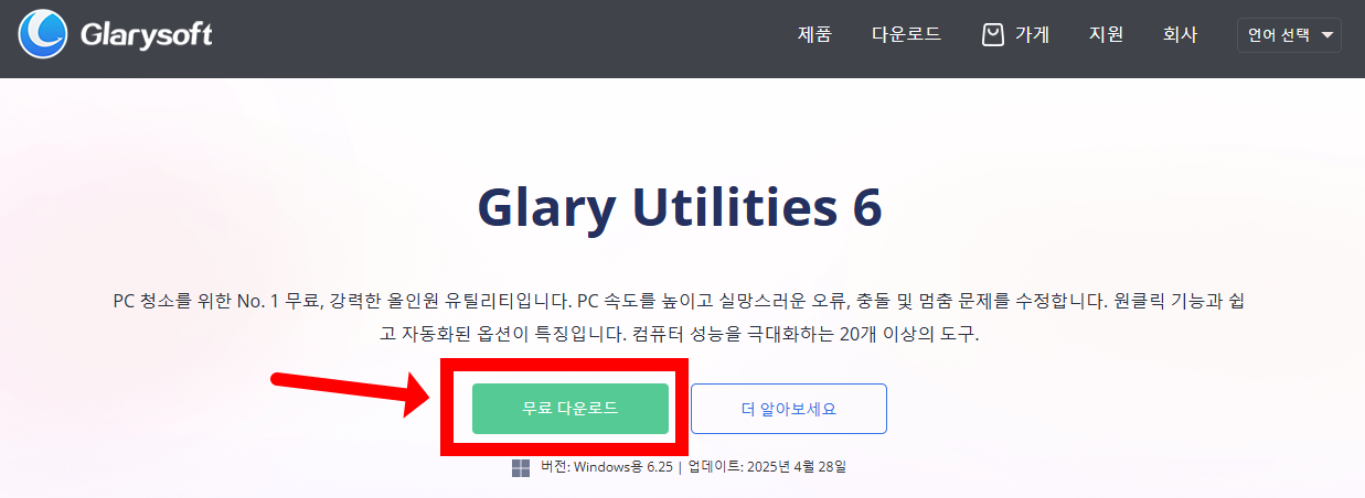 - 글래리 유틸리티 공식 사이트로 접속하세요.