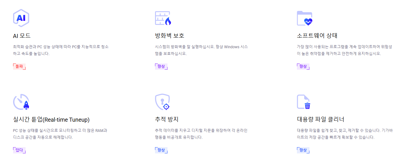사용하면 PC의 서탄, 성능, 보안성을 개정할 수 있습니다.