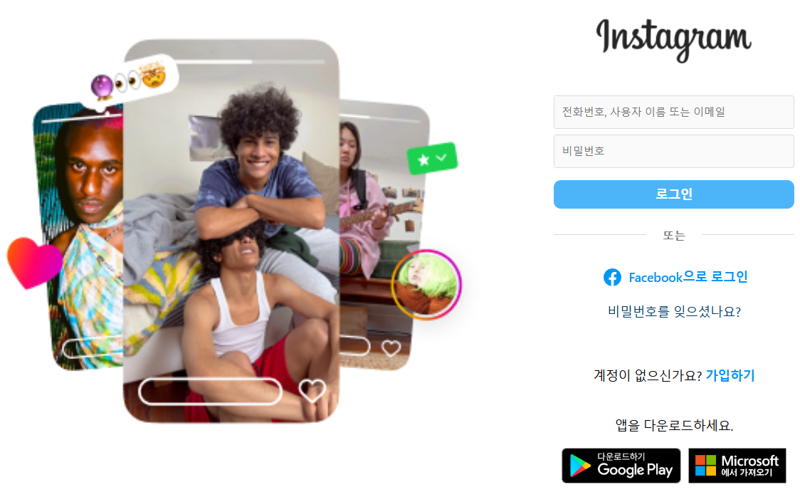 - 인스타그램 웹사이트 접속